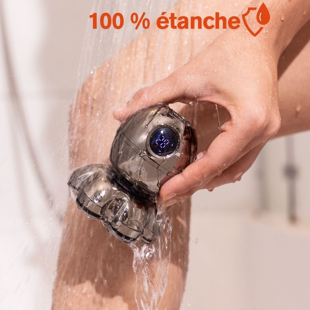 Chaque lame pivote indépendamment à 360° pour s’adapter aux contours de votre corps. Une protection à ressort aide à éviter les entailles, coupures et irritations — même en cas de pression excessive. Si cela arrive, le moteur ralentit pour vous avertir. Intelligent, sûr et doux.